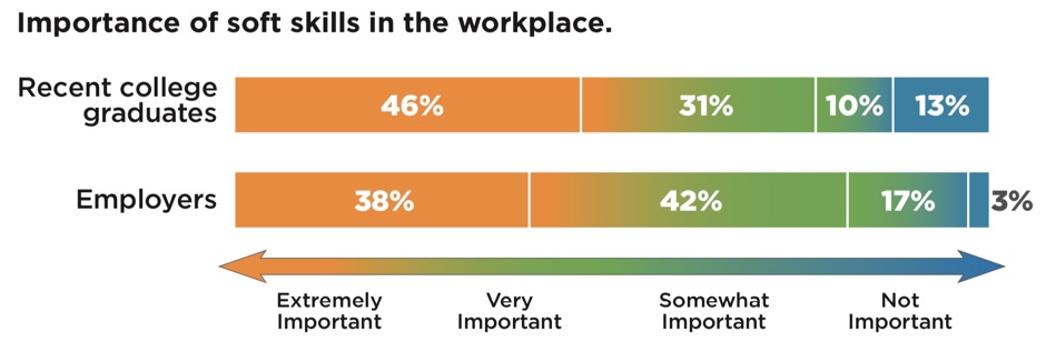Recent college graduates and employers agree that soft skills are important for workplace success.
